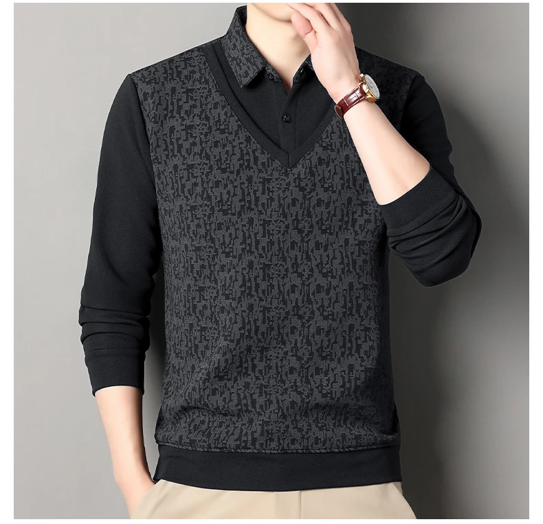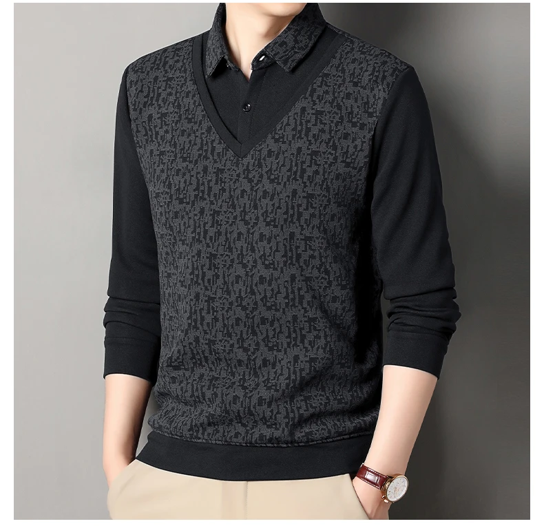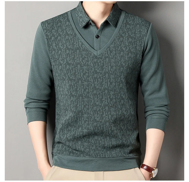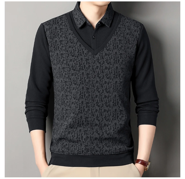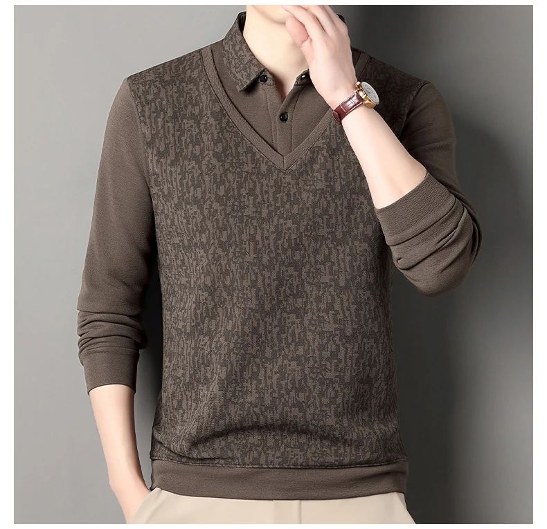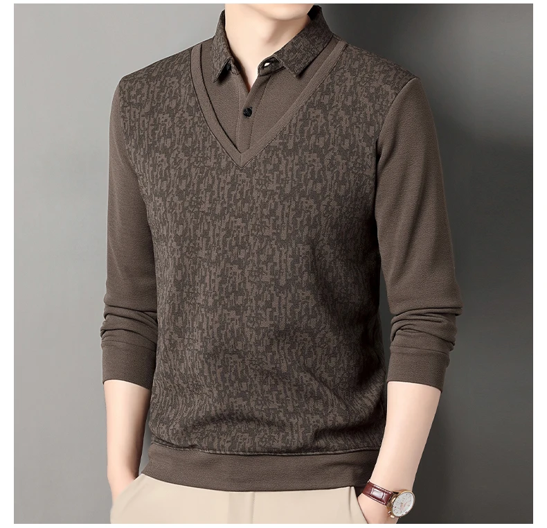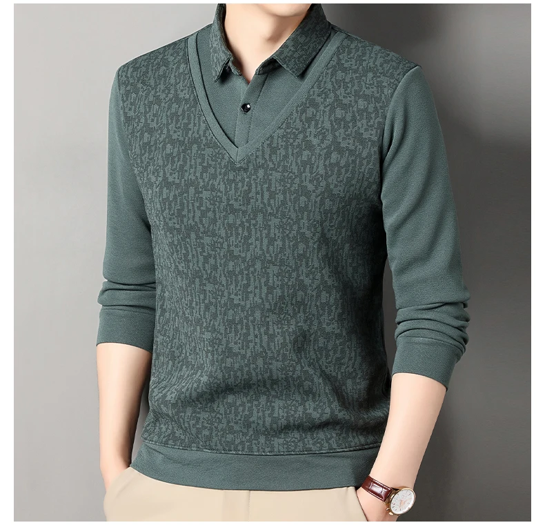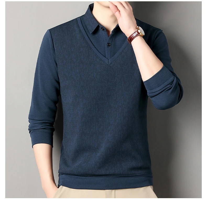 Male Fleece Knitted Sweater Men's Pullover Autumn Winter T-shirt Collar Sweaters Beige Navy Blue Korean Top Clothing