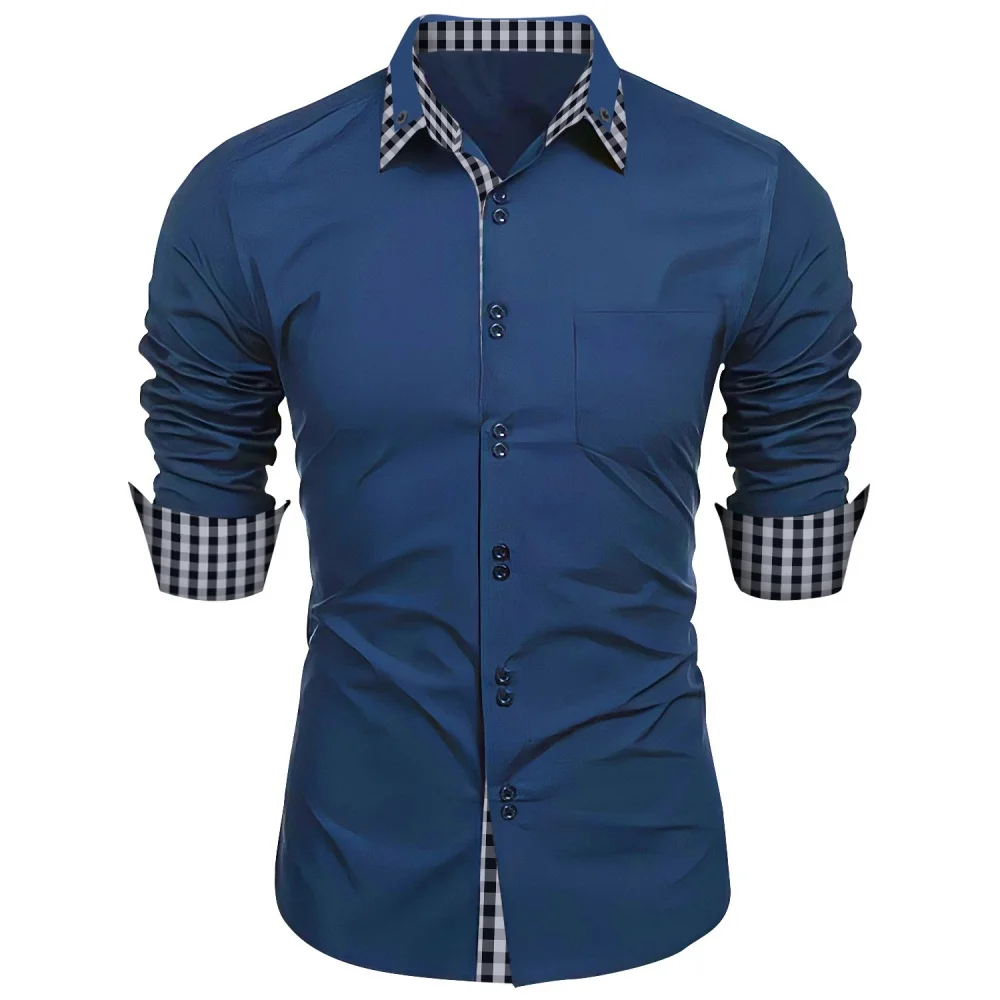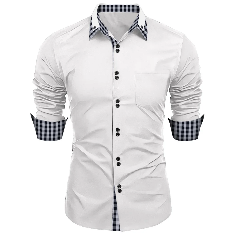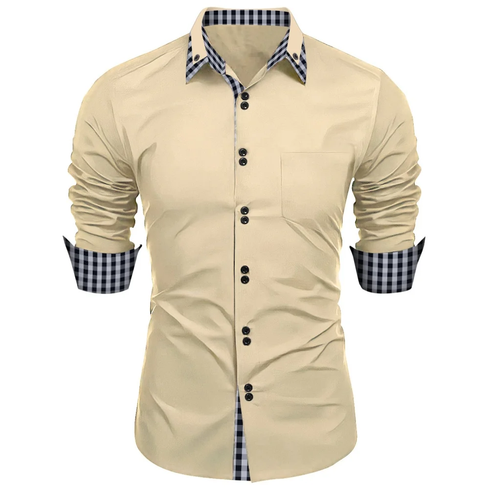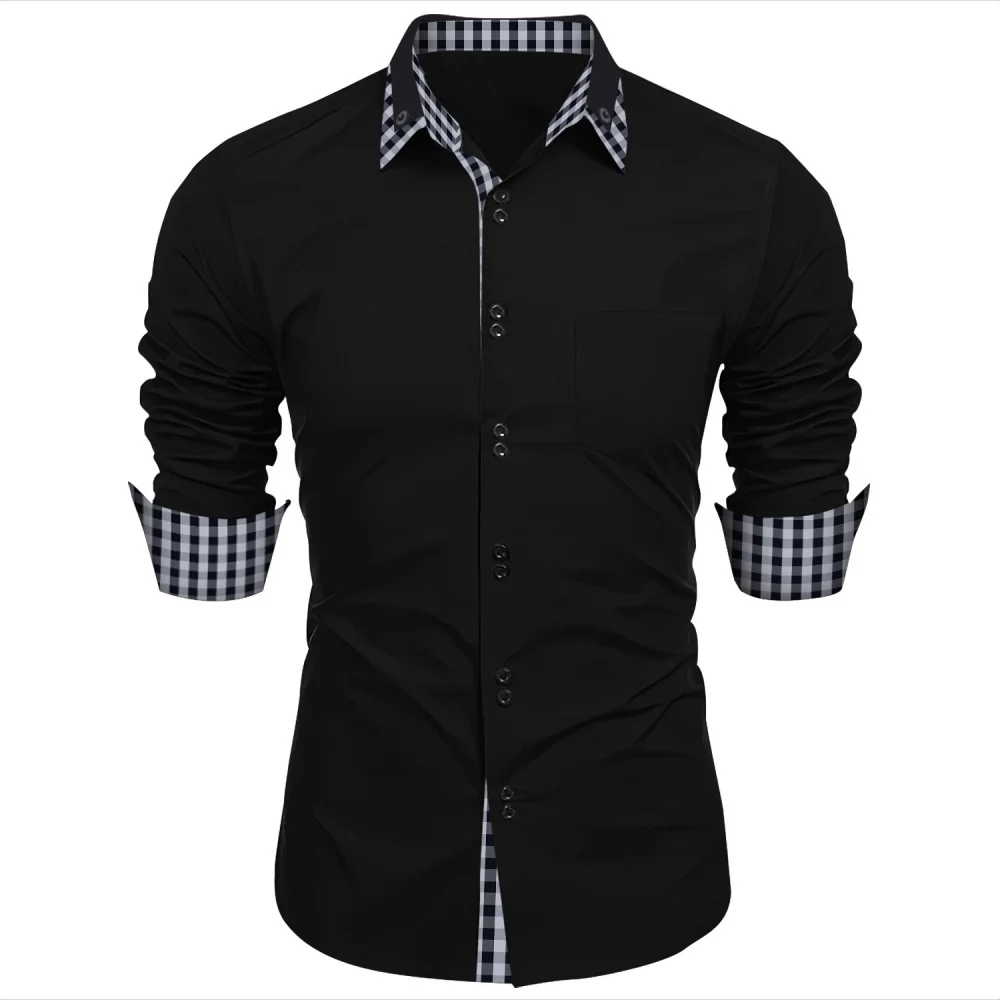 New men's shirt - traditional long-sleeved double-breasted plain-colored loose-fitting office shirt - men's business casual top